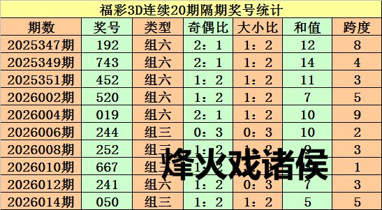 上期转头:福彩3D第2026015期奖号:532。组六、大小小、奇奇偶。